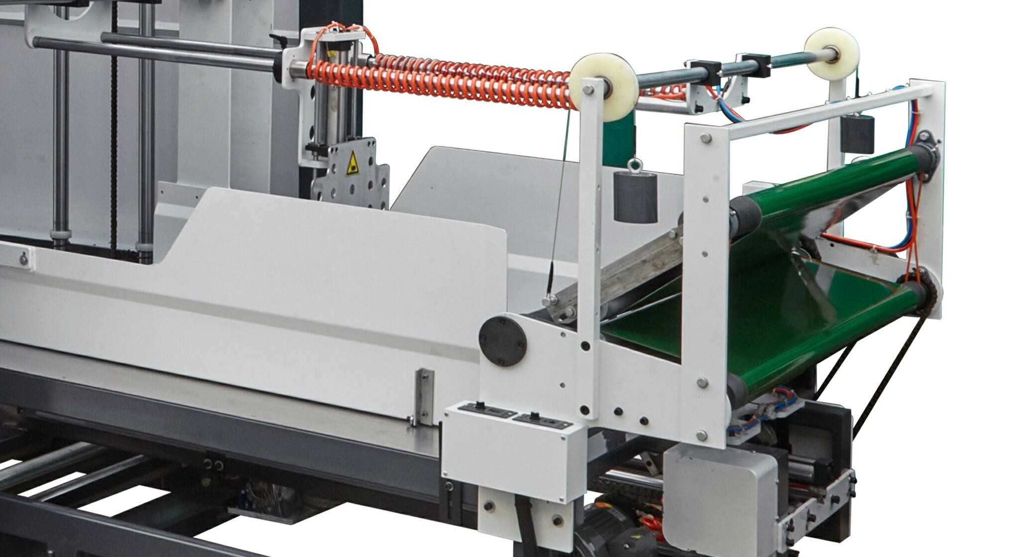 - SYSTÈME DE SÉPARATION DE PAPIER : Roue d'entraînement et joint de stratification de ceinture de presse pour transmettre la puissance. Le papier stratifié soit empilé vers le bas pour avaler la palette par la roue d'entraînement et ceinture synchrone, quand atteignez le nombre spécifique, en séparant l'ascenseur de tige et séparer le papier.